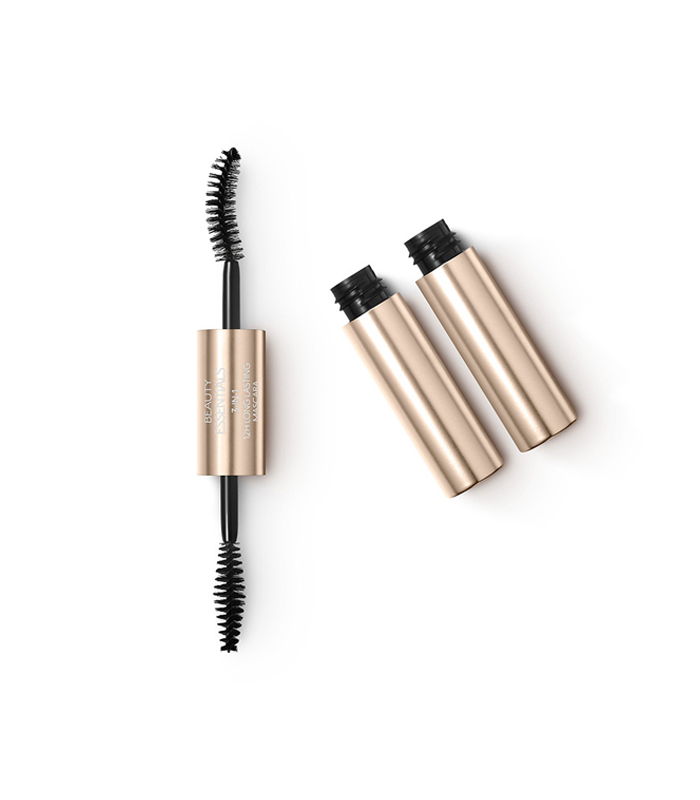 ریمل 3 در 1 با رنگ مشکی و برس دو سر، با ماندگاری تا ۱۲ ساعت.