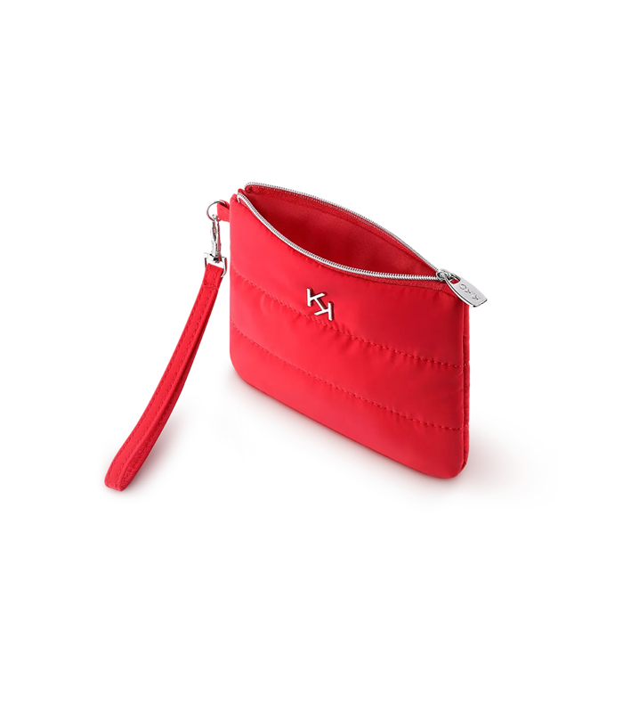 • زیپ نقرهای، بند دستی و لوگوی برجسته KK